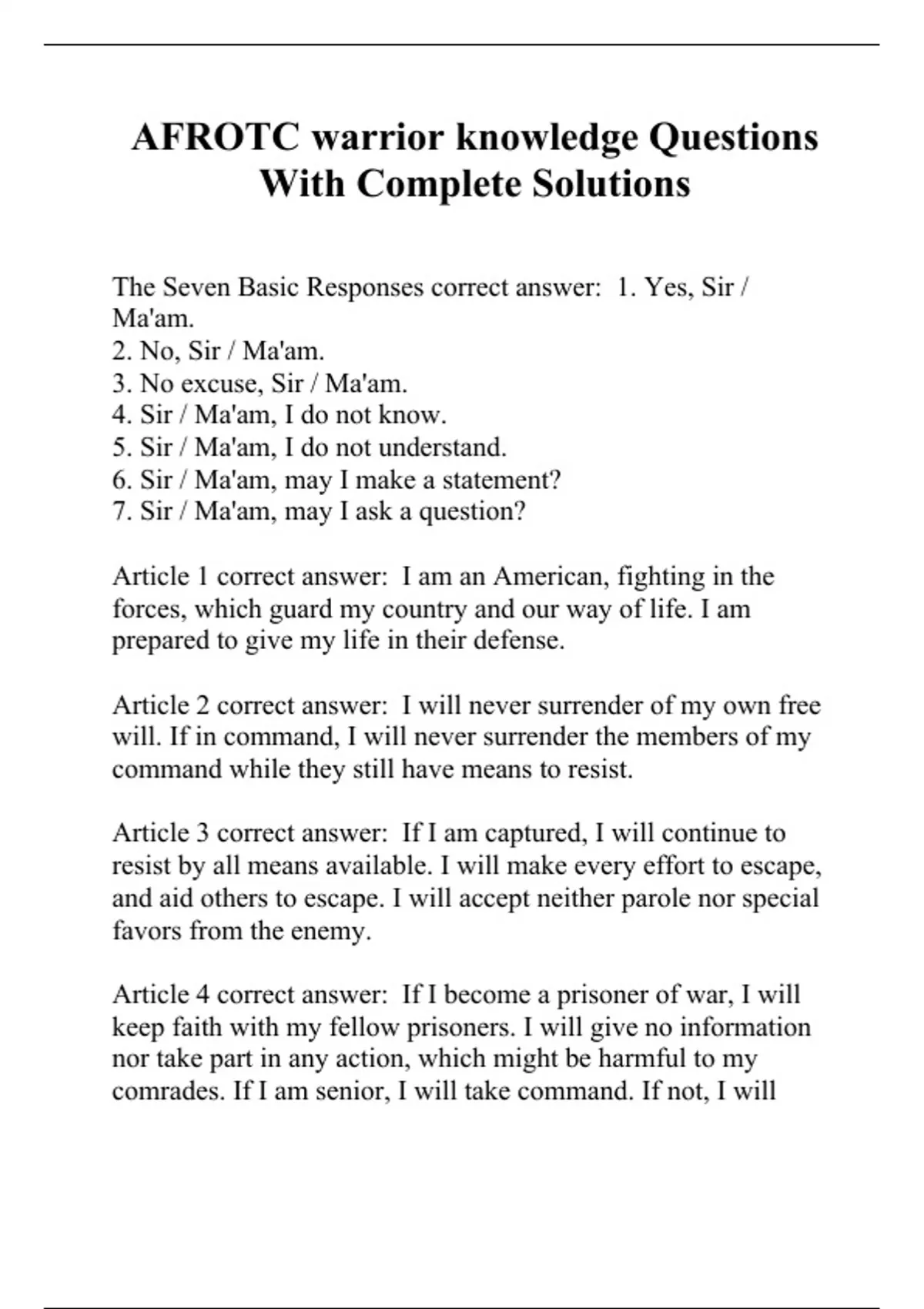Warrior Knowledge Afrotc 2024. For memorization by listening and speaking along with the recording; Importance of warrior knowledge during ft?